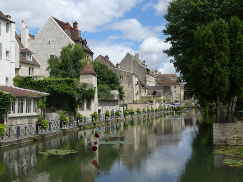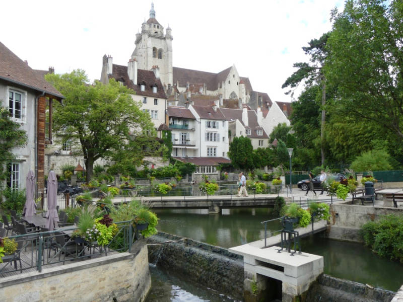 Toen we vanmorgen wegreden zeiden we tegen elkaar dat het net was of we een soort bedevaart reisje gingen maken. Stonden we vanmorgen nog in de Jura, nu staan we 27 km verder in de Bourgogne ( Côte d’Or) bij het dorp Lamarche sur Saône. Hier zijn we vorig jaar ook geweest na de knie operatie van Everdien, we hebben toen ons 1ste ‘oefen’ reisje gemaakt. Lamarche was onze 3e plek waar we stonden en hier ging het fout met de knie van Everdien. We moesten onze reis voortijdig afbreken omdat Everdien een vochtophoping in haar knie kreeg die daardoor erg gezwollen en pijnlijk was. Het kwam w.s. doordat de temperatuur tot boven de 30º was opgelopen.