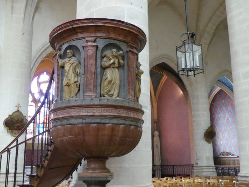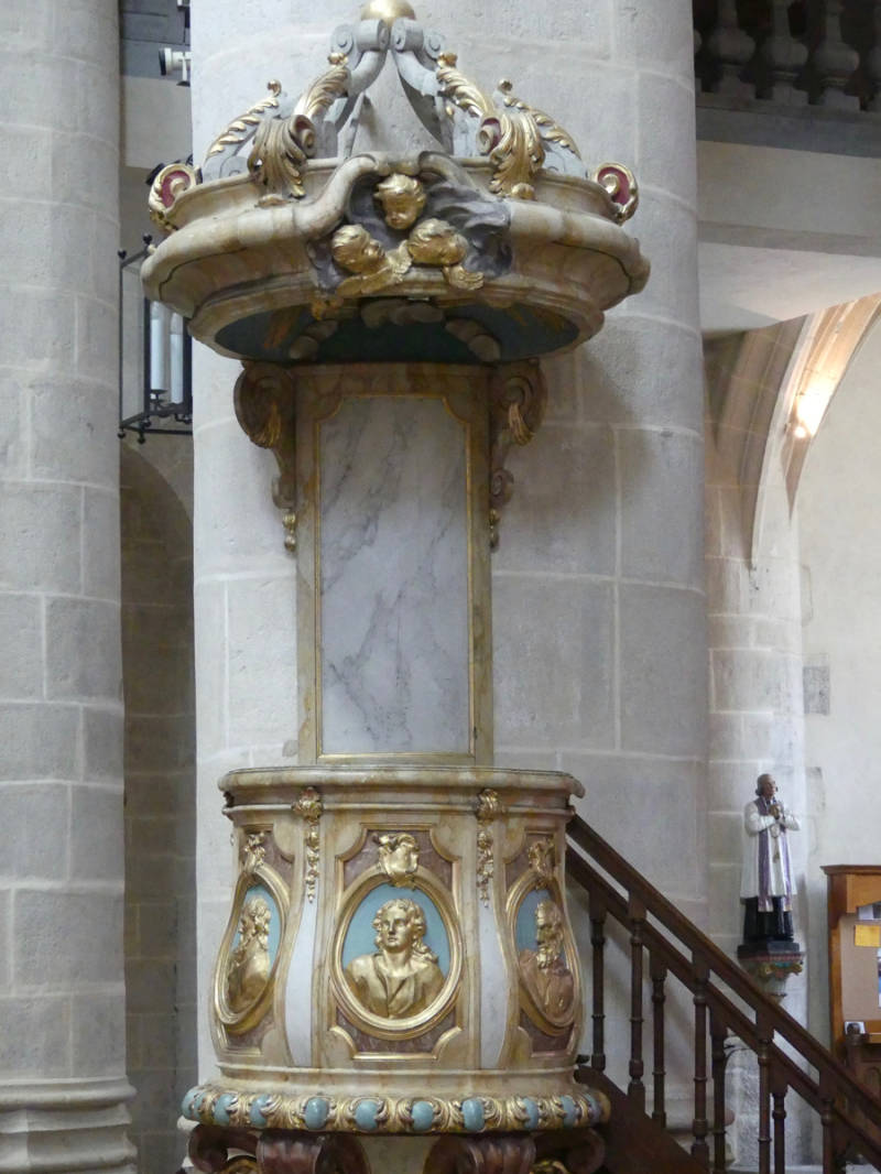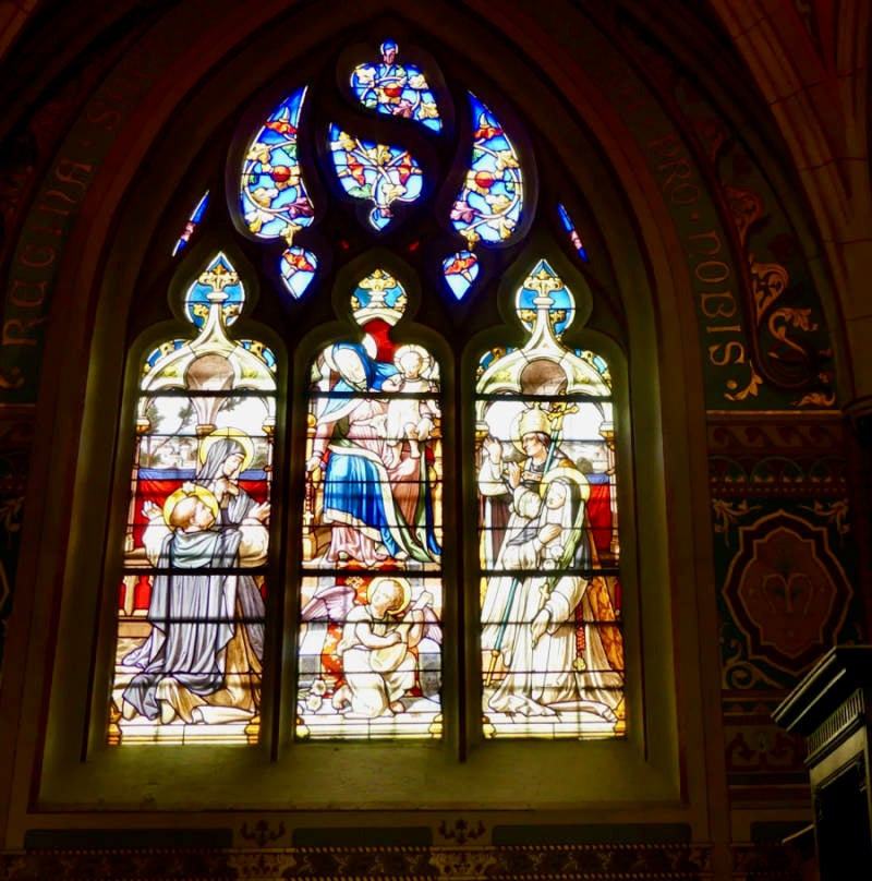 Een van de vele gebrandschilderde ramen en er zijn 2 kansels