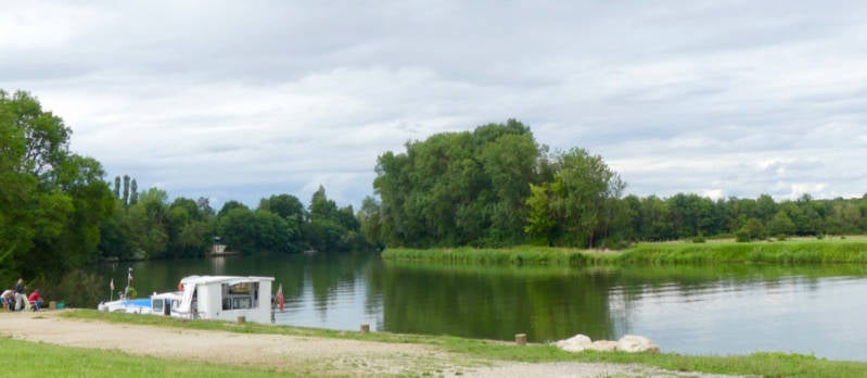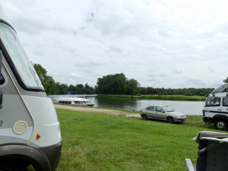 We vinden de cp in Lamarche een prachtige plek, je staat op een soort weiland aan de rivier de Saône en als je geluk hebt, zoals wij nu, sta je vooraan bij het water zodat je over de Saône uitkijkt. Er varen plezierjachten voorbij en voor de cp is een aanlegplaats.