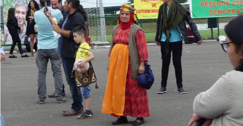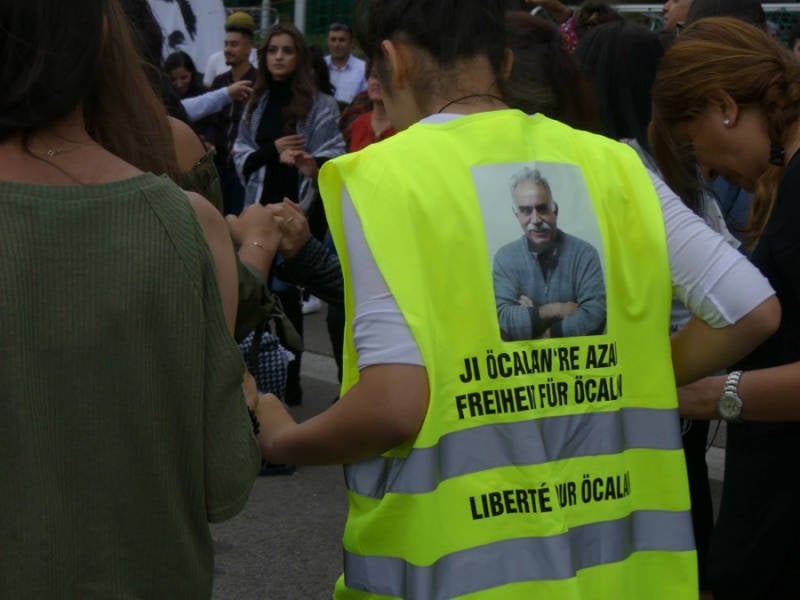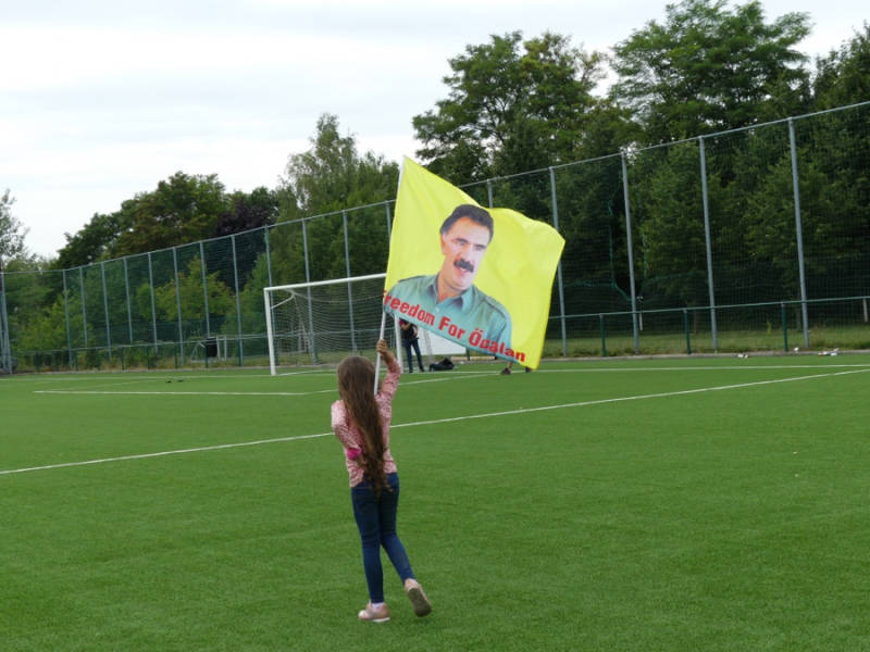 In Duitsland zijn Koerdische vlaggen en vlaggen met afbeeldingen van Öcelan er op verboden, hier geen probleem. En geen politie te bekennen, dat wordt kennelijk niet nodig geacht. Leuk omdat even zo mee te kunnen maken.