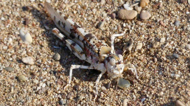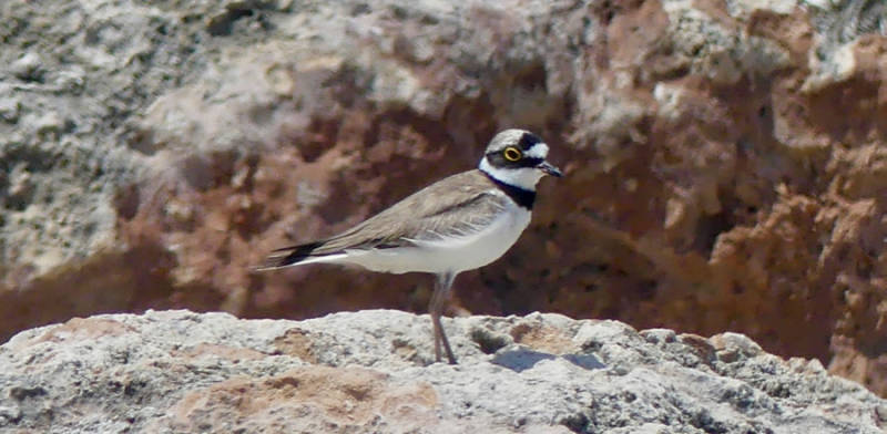 Dit schijnt een uitstekende habitat te zijn voor de kleine plevier, we zagen er al een gisteren in Marathopolis. Hier zijn er echter een paar die af en toe voor onze neus rond trippelen, hele levendige vogeltjes.