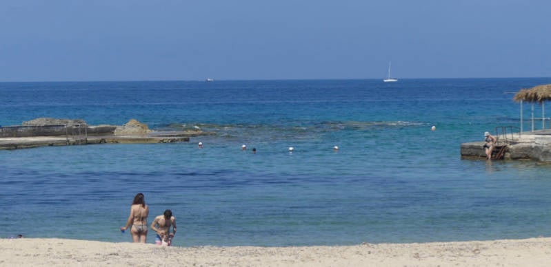 Het water is heerlijk en er was vanmiddag geen wind op het strand, daardoor voelde de 30º die het was nog heter aan, dus maar weer een verkoelende duik in het water.