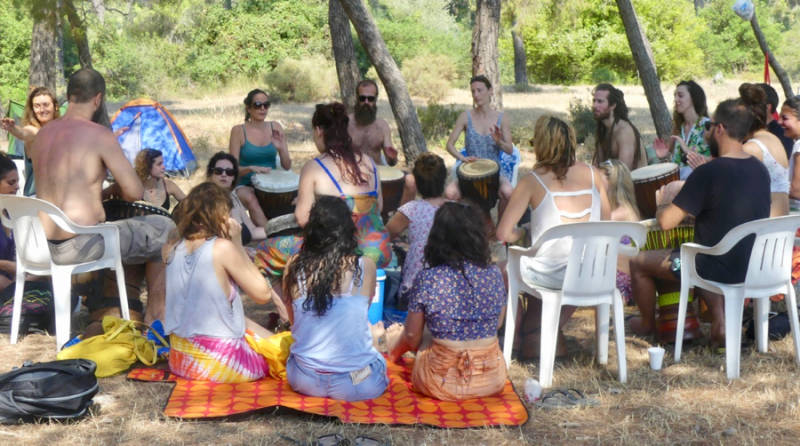 We hebben aan de ene kant als buren een Italiaanse camper met een echtpaar waarvan de vrouw meerdere talen spreekt, o.a. Frans en Engels. De andere buren zijn een jong Duits stel , hipsters, met 2 jonge kinderen van 10 maanden en 3 jaar. Leuke mensen die veel reizen en via een regeling in Duitsland waarbij de vrouw 3 maanden verlof krijgt met behoud van 60% salaris, al enkele jaren reizen maken van een paar maanden.