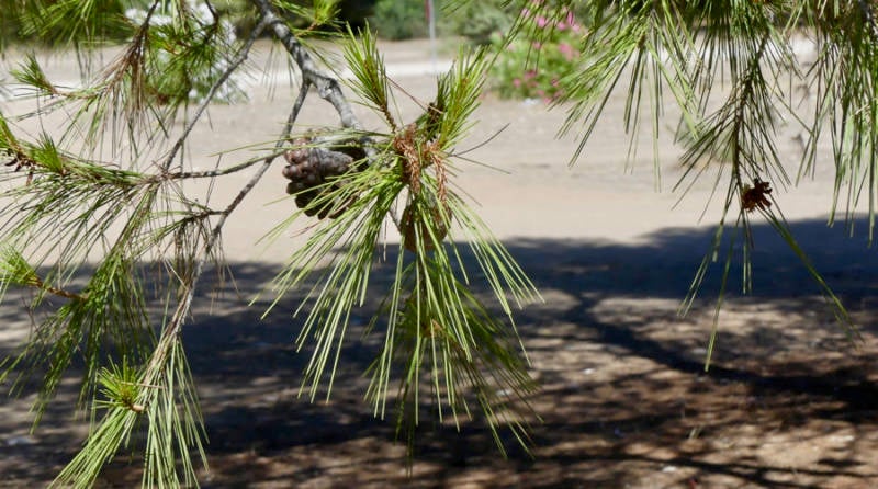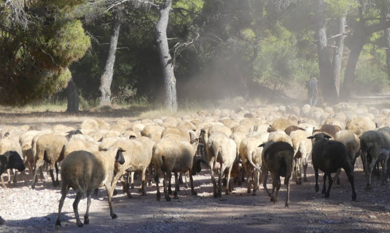 Daarna zijn we naar het bos van Elia gegaan, slechts 10 km van Kalo Nero, maar weer heel anders. Stonden we in Kalo Neo nog op een parking op steentjes bij een dorp, hier staan we op een open plek in het bos met wat oleanders en cactussen met bloemen en vijgen rondom ons. Het bos van Elia is een pijnbomenbos waar het gedoogd wordt om te staan met camper of tent, althans buiten het hoogseizoen. We zijn 4 jaar geleden hier weggestuurd in augustus maar toen kon je nergens staan in de gemeente Kyperassia, ook in Kalo Nero niet, nu is het geen probleem.