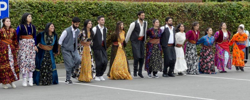 Wat ook wel bijzonder is dat er op het voetbalveld naast de parkeerplaats een culturele manifestatie van de PKK is met muziek, dans en toespraken. We mochten eerst het festivalterrein niet op maar hebben wel mee kunnen genieten van de muziek vanuit de camper, om buiten te zitten is het ons te fris. Later konden we naar binnen en vertelde een Koerd dat dit een jaarlijkse manifestatie is georganiseerd door jonge Koerden. Er waren vanmiddag tussen de 3 en 4 duizend Koerden uit verschillende Europese landen geweest.