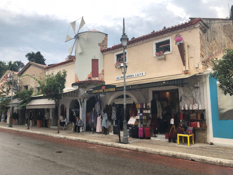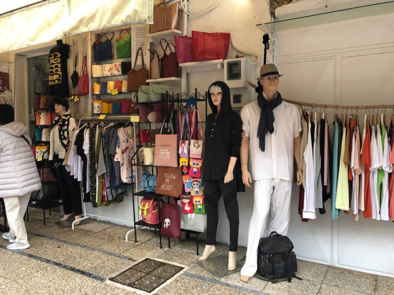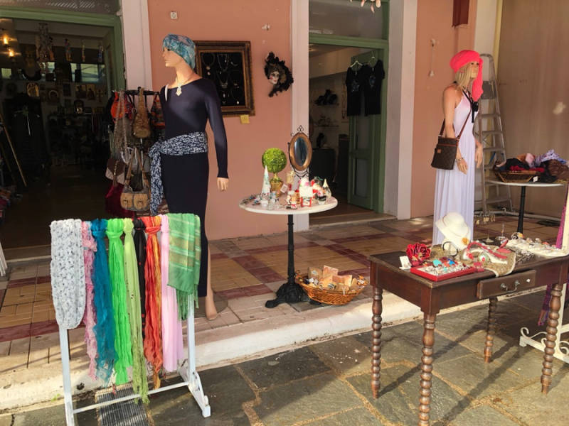 een paar aardige kledingwinkeltjes, geen foto van juweliers, wel een winkel waar alleen houten producten koop zijn, houten dildo's op de stoep, merkwaardig maar dat zie je op meer plaatsen in Griekenland terwijl de Grieken nog preutser zijn dan de Nederlanders tegenwoordig zijn, vooral jongeren dan.