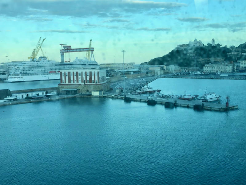 Om 16.45uur meerde de boot aan in de haven van Ancona, met een vertraging van 1.15uur.