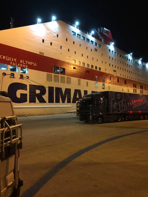 We waren al vroeg in de haven, bij het ophalen van de tickets kregen we te horen dat de boot niet om 19.00 uur zou vertrekken maar een uur later , dit door het slechte weer in Italië.