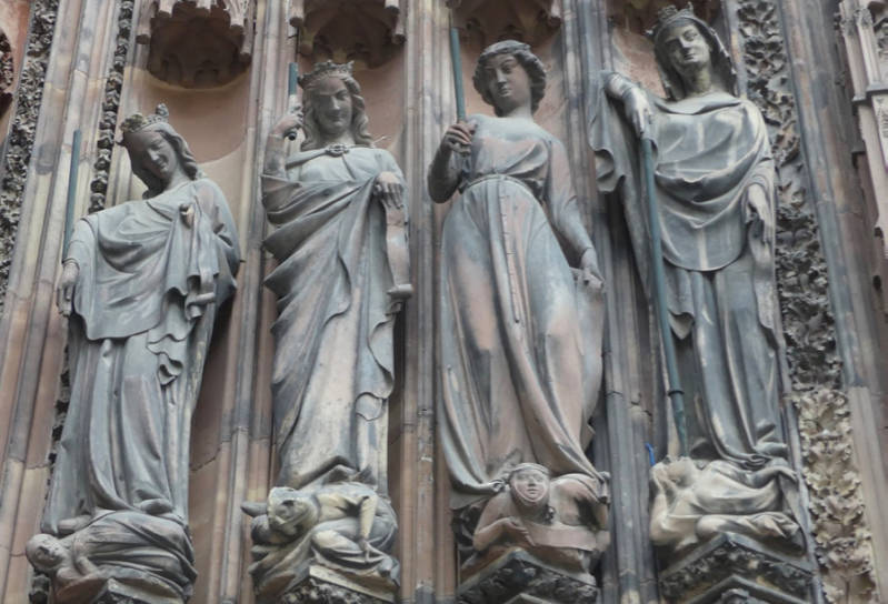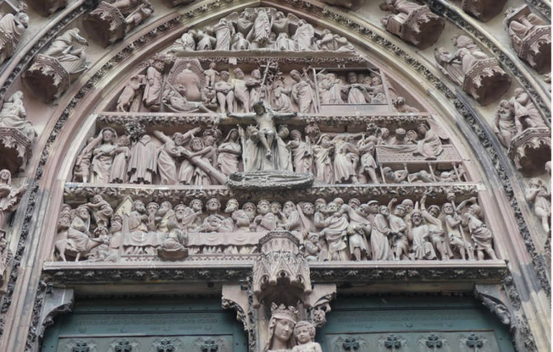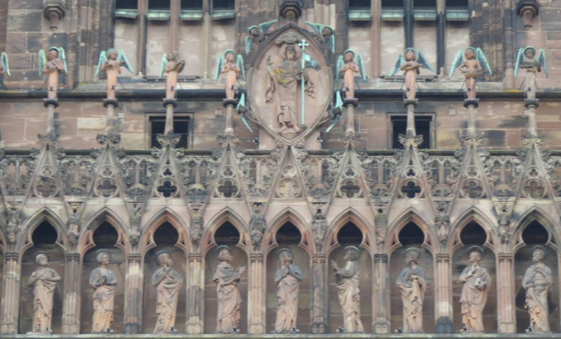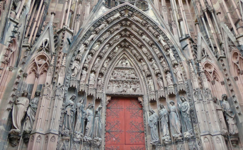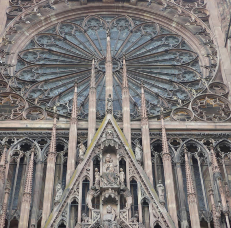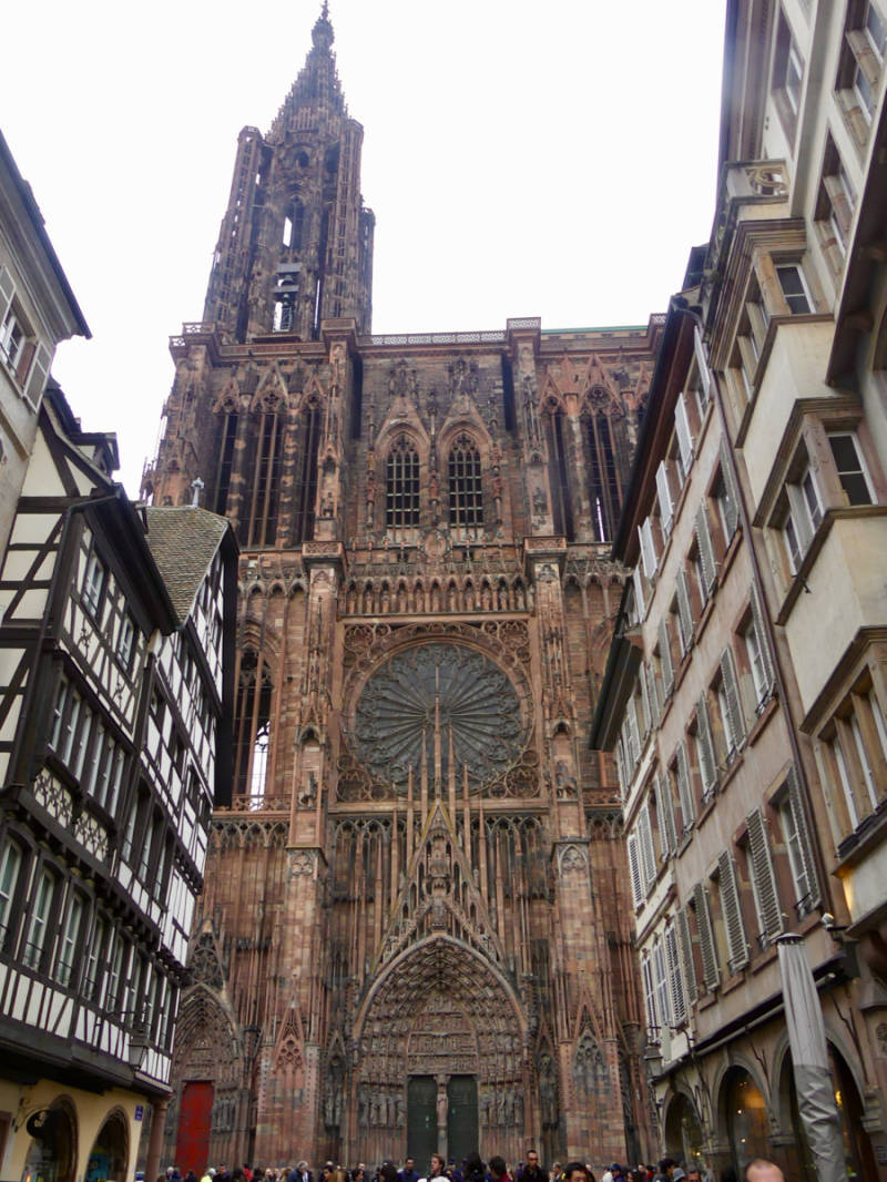 De kathedraal van Straatsburg (Cathédrale Notre-Dame de Strasbourg) behoort tot de grootste en beroemdste kathedralen van Frankrijk. De bouw van de uit roze zandsteen opgetrokken kathedraal begon in 1176 en werd na een 263 jaar durende bouwperiode, waarin bijna onafgebroken werd gewerkt, in 1439 voltooid. De kathedraal heeft een van de hoogste kerktorens ter wereld, de noordelijke toren meet 142 meter en was van 1647 tot 1874 het hoogste bouwwerk ter wereld. In de loop der jaren heeft de kleur van de kathedraal een roestbruine kleur gekregen, een beetje sombere uitstraling.