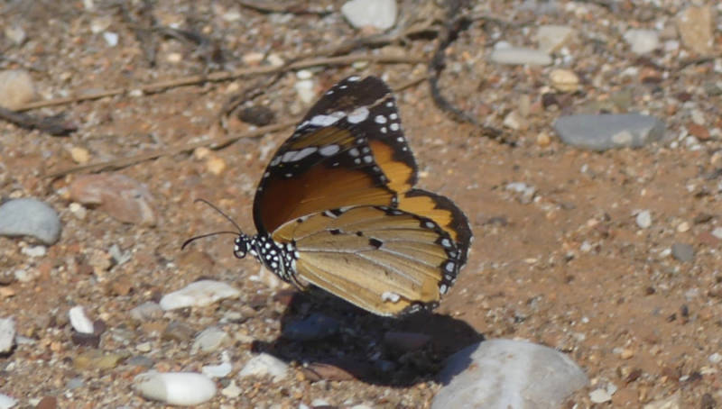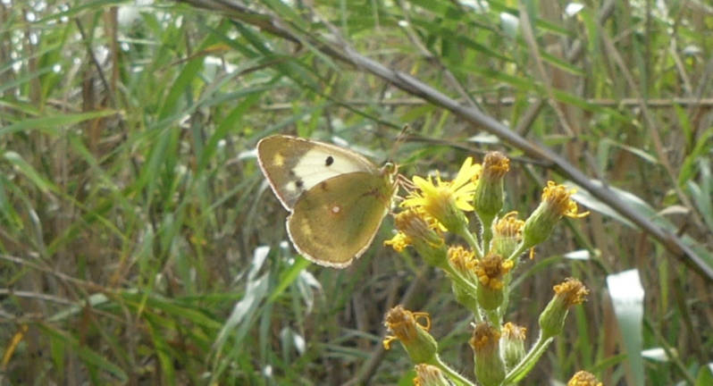 Er bloeien weinig bloemen, vlinders zijn er merkwaardig genoeg nog wel te zien. Welke soort dit is, hebben we nog niet ontdekt
