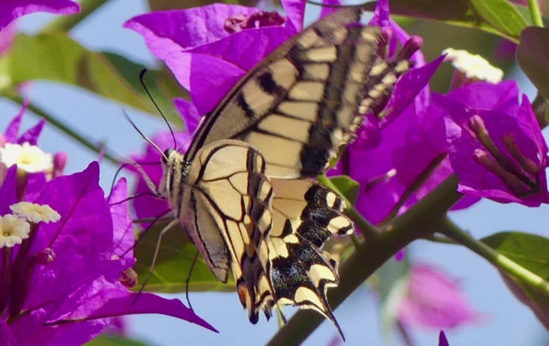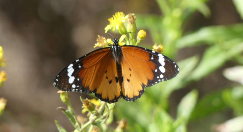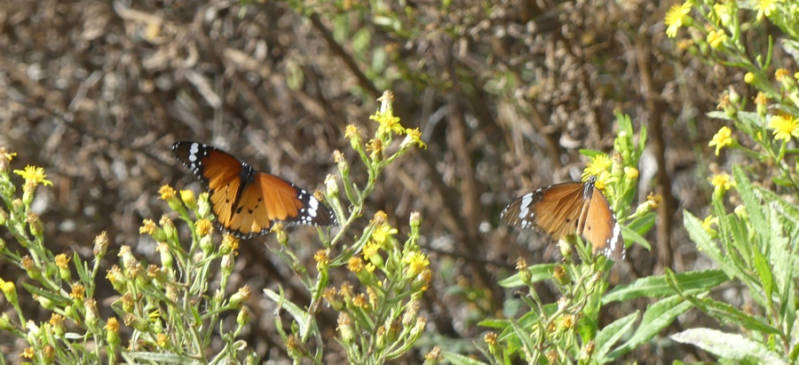 ook hier de Monarchvlinder die hier op de weinige nog bloeiende bloemen zitten, w.s. een mannetje en een vrouwtje