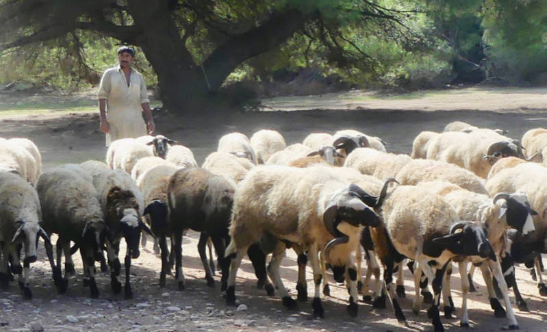 de Pakistaan die in Elia bij de boer werkt, hoedt de schapen