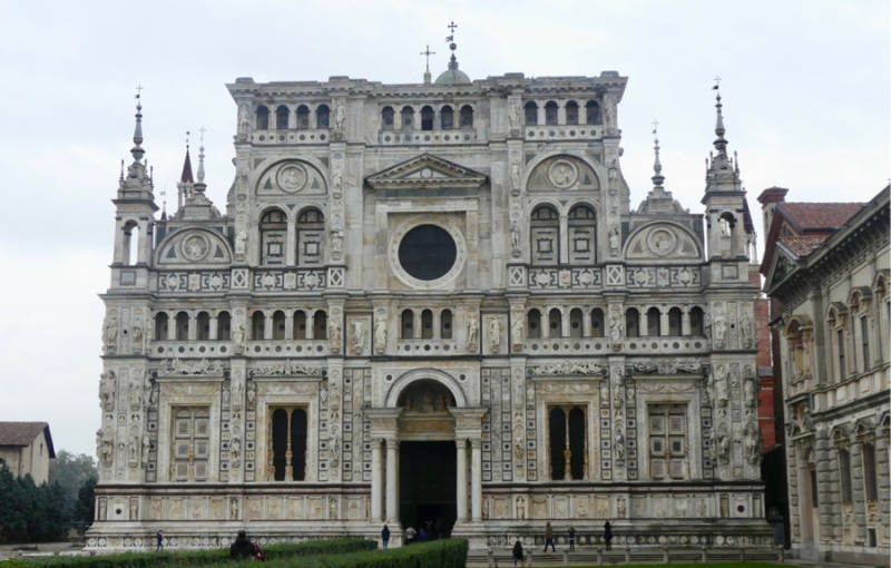 het schitterende karthuizer klooster Certoso di Pavia , één van de grootste kloosters van Italië