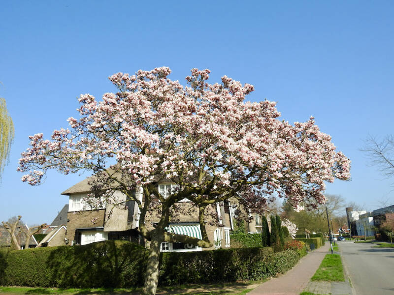 2 soorten Magnolia bomen in bloei, toen scheen de zon nog
