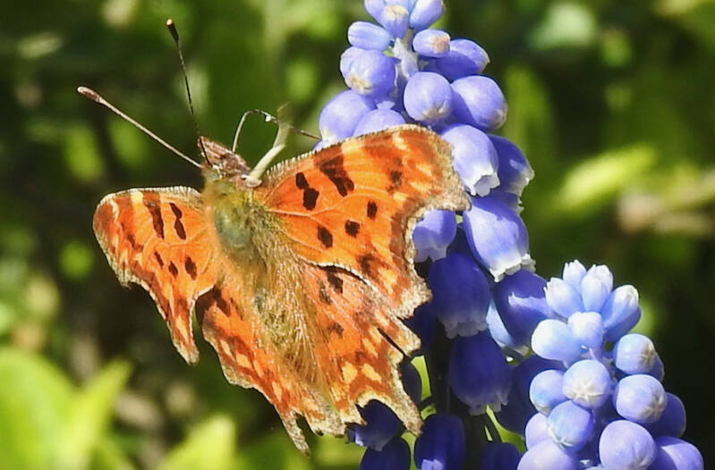 We hebben 4 soorten vlinders op bezoek gehad in de tuin, naast de dagpauwoog en de gehakkelde aurelia die op de blauwe druifjes afkwamen voor de nectar , kwamen ook meerdere malen de citroenvlinder en het koolwitje voorbij vliegen.
