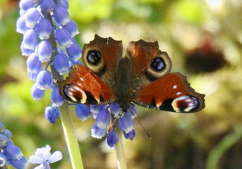 Vrijdag hebben we de eerste dagpauwoogvlinder in onze tuin gezien, dat is eerder dan vorig jaar.