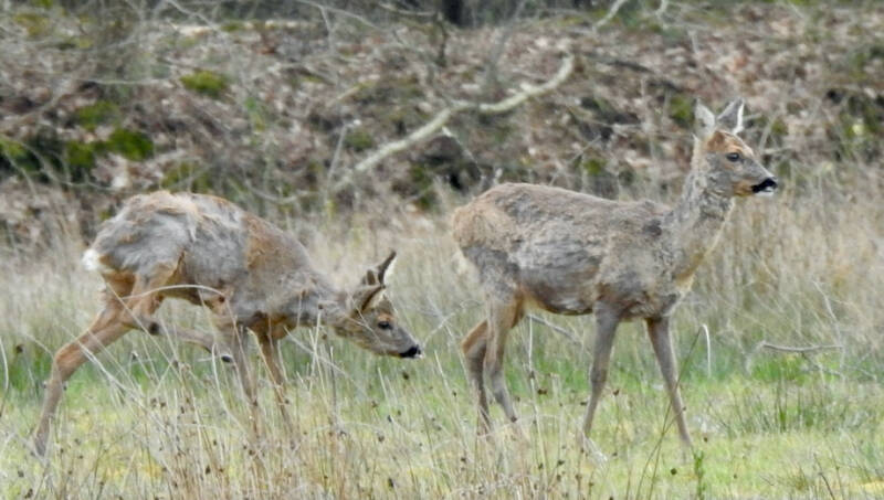 We zagen 3 reegeiten op ongeveer 100 m. afstand van ons.