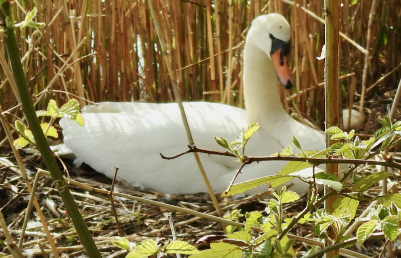 Wat foto's van broedende vogels bij ons in de buurt, hierboven een trotse zwaan op het nest.