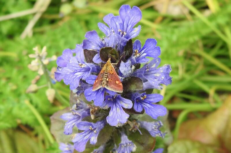 Munt vlindertje (spanwijdte slechts 10-15mm) in de tuin op het kruipend zenegroen