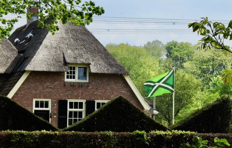 We hebben vanmiddag, toen het droog geworden was, een rondje Almen gefietst. Dat doen we regelmatig, meestal in de zomer of najaar wanneer we thuis zijn. Het is een rondje van ruim een uur, goed te doen dus, ook met de tegenwind op de terugweg dankzij de e-bikes. Almen is een kerkdorpje met nog geen 2.000 inwoners. Het is in de omgeving bekend om het hotel/restaurant met theetuin ‘ de Hoofdige boer”, zo genoemd naar een gedicht van de Achterhoekse dichter Staring.