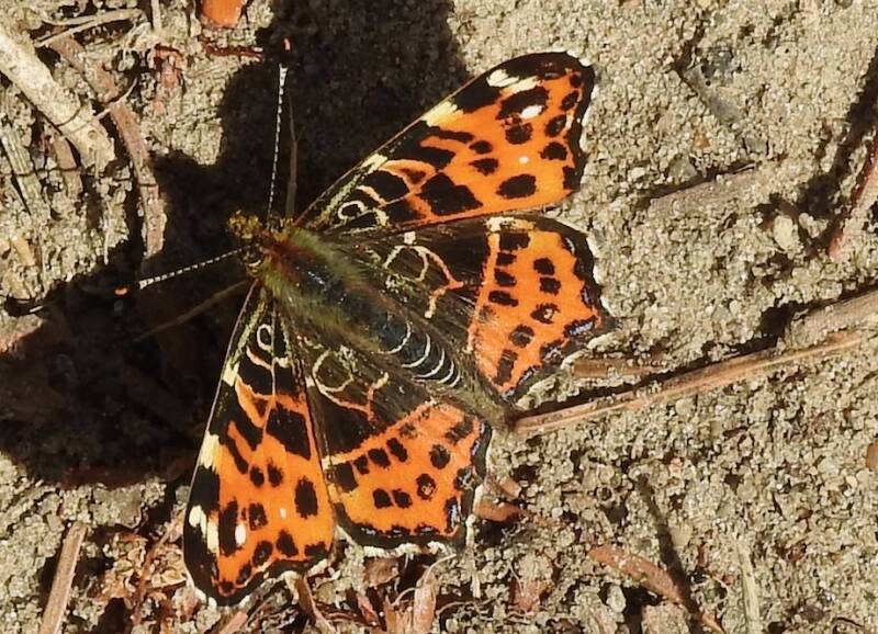 Het was al te donker voor een goede foto , gewacht of er de afgelopen dagen nog een keer een zou komen, maar helaas. Daarom ,naast een toch maar geplaatste foto, ook een filmpje van de Vlinderstichting van deze, zich zeer snel verplaatsende vlinder, die daarna weer stil hangt om honing uit een bloem te zuigen.