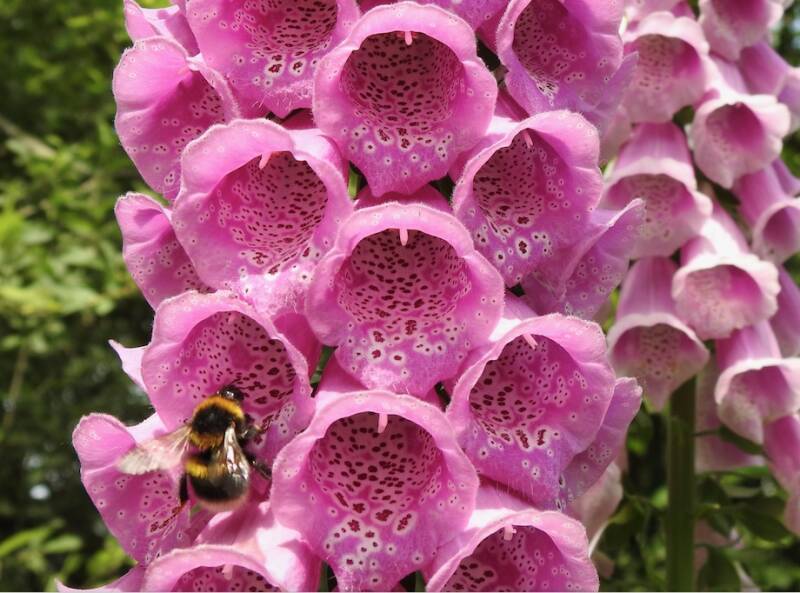 Aardhommel op zoek naar honing in vingerhoedskruid