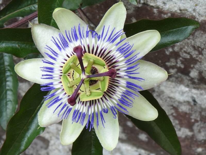 De eerste passiebloem in onze tuin stond vandaag in bloei