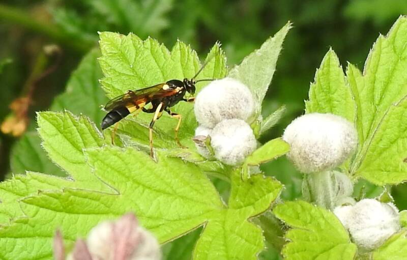 De 2 vorige foto's genomen op de fietstocht vanmiddag door de IJssel-vallei. Foto hierboven in onze tuin: een sluipwesp.