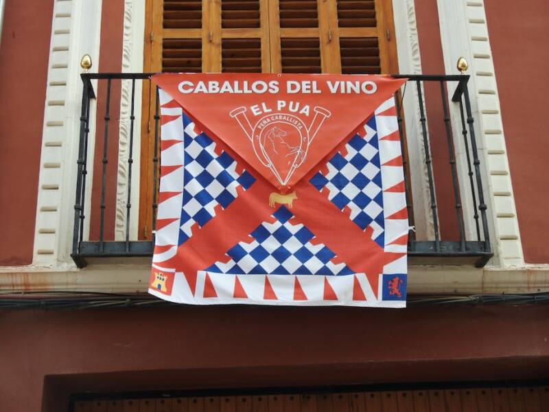 Wat is nu eigenlijk de Caballos del Vino, het ‘draven met de wijnpaarden’? Ongeveer 60 paarden, fraai versierd doordat ze helemaal gehuld zijn in geborduurde kleden en wijn dragen in kruiken, draven door de straten van het stadje de heuvel op naar het kasteel, daarbij begeleid door mannen die aan de korte leidsels hangen. Deze mannen maken deel uit van peñas, een soort broederschappen, die elk een paard begeleiden De paarden die het snelst boven zijn krijgen een prijs, er zijn ook prijzen voor de fraaist versierde paarden.