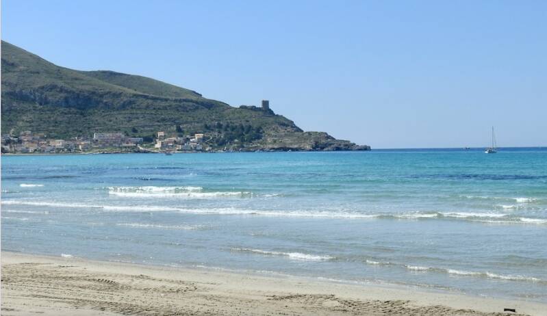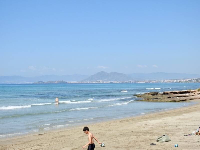 We staan aan een mooie baai in La Azohia en we kijken, ook vanuit de camper, naar de Cabo de Tiñoso met een toren.