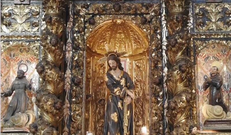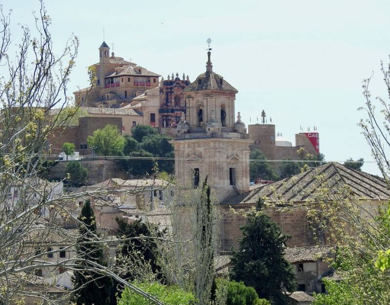 Basiliek Santuario de Vera Cruz met daarvoor de parochie de El Salvador, rechts de muren van het Moorse fort