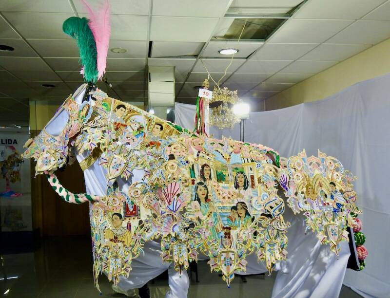 Hier de achterkant van de Moros te paard, zo zie je goed de schitterende kleden.