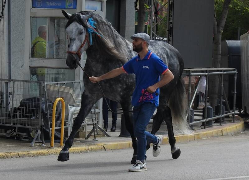 Vanmiddag was er een andere gebeurtenis nl de Caballos a Pelo, letterlijk paarden met haar, dus zonder kleedjes. We hadden geluncht in de camper, in de stad waren alle eetgelegenheden afgeladen en lege tafels bleken gereserveerd.