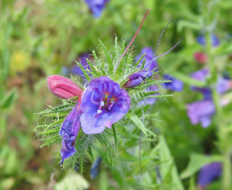 We beginnen de plek in Murcia hoe langer hoe meer te waarderen, praktisch voor bezoek aan de stad en de noodzakelijke winkels vlakbij, de eerste keer dat we hier kwamen op weg naar Marokko vonden we het maar niets . Dat kwam ook omdat er langparkeerders stonden die de cp als hun territorium beschouwden. Maar het zou vandaag 28º worden in Murcia, tijd om naar zee te gaan. Het was een ritje van 90 km naar La Azohia. Eerst een stuk via de A7, later via kleinere wegen richting Mazarron, de eerste kennismaking met de plastic kassen cultuur die het landschap verpesten. We reden het laatste stukje via een kustweg en er kwam een bord met wegomlegging, Deviso. Wat, nu , laten we het er toch maar op wagen, het is nog maar 6 km. Bij de wegafsluiting moesten wij het weggetje naar rechts hebben naar La Azohia, goed gegokt dus. Hoe kom je eigenlijk aan dat plekje vroeg Everdien nog onderweg. Nou, de naam kwam me bekend voor en op P4N zag het er aardig uit. Bij het plekje gekomen kwamen we moeizaam door geulen het wat hellende terrein op, juist bij de ingang had de overvloedige regenval sporen nagelaten. ( later kwam een bulldozer de ingang weer egaliseren)Maar voorzichtig manoeuvreren en we kwamen op het braakliggend stukje veld waar we na enig zoeken een plaatsje vonden die onze waardering kon wegdragen: zicht op zee en aan de andere kant een veld met prachtig bloeiende bloemen, gele Spaanse Margrieten en het paars van Slangenkruid en Mediterrane Winde .