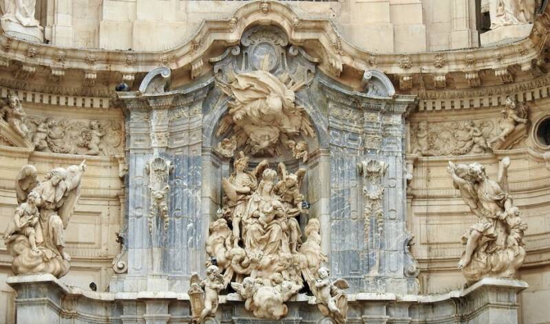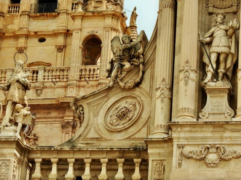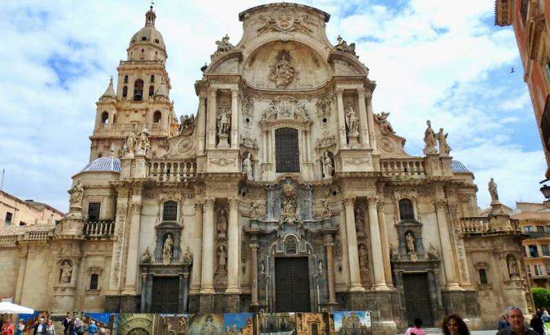 De indrukwekkende gevel van de kathedraal van Murcia.