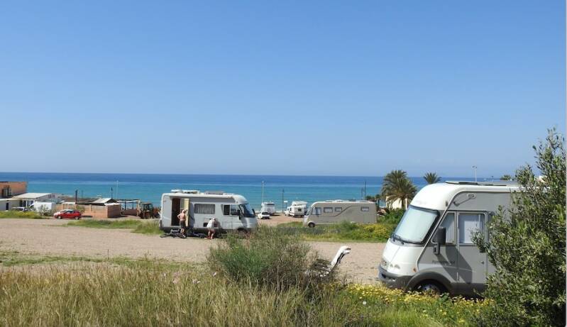 We konden ook vooraan staan met direct zeezicht, nadeel is dat je op een soort podium zit voor iedereen die er langs loopt of rijdt, er loopt een weg vlak langs. Dus dik tevreden en nog was het kwartje niet gevallen. Dat gebeurde pas toen we een stukje gingen wandelen en we bij een Rambla, een droge rivierbedding kwamen waarin ook een paar campers stonden. Verrek, we hebben hier eerder gestaan op deze plek in de rivierbedding, dat was 11 jaar geleden. Dat was het jaar dat we niet naar Marokko zijn geweest omdat Everdien’s moeder toen was overleden. We hebben toen een reis gemaakt naar Spanje , vanaf maart en zijn toen oa hier en ook in deze omgeving op een paar plaatsen geweest. Echter op de plek waar we nu staan was toen alleen maar gras en was het nog schuiner dan het nu is, het is wat geëgaliseerd nu en er zijn stukken waar je goed kunt parkeren, wel keggen gebruiken. Bovendien zijn er grote parkeerplekken met steentjes, een hele vooruitgang. Nu vinden we het prima om te staan en lijkt ons de Rambla niets, hier hebben we een mooi stukje natuur achter ons.