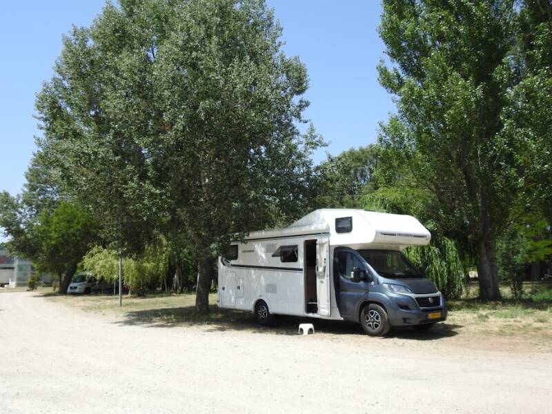 Het was vandaag weer een warme dag, om 10.00 uur al 28º, het koelde iets af door wind van ze en later was het weinig wind en werd het 33,6º volgens de Buienradar app. Omdat we geen doek bij ons hebben om aan de luifel te bevestigen, die zit in onze eigen camper, kregen we van de buren zo’n doek tegen de zon. Vanavond kregen ze bezoek van vrienden en we dronken en glaasje wijn mee na aandringen van hun kant en wat (valse ) bescheidenheid van de onze. Ze hadden kaas en biologische worst, wij nog wat oude Hollandse kaas. Toch even weer wat leuk kunnen praten, een van de bezoekers sprak evenveel Franse woorden als ik Spaanse. Leuk deze ontmoetingen, we houden van dit land.