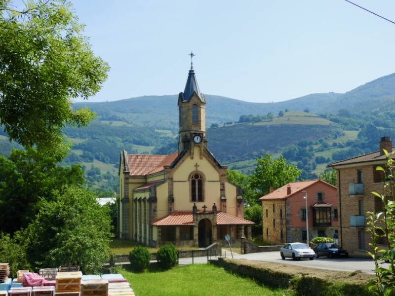 Het dorp hier ligt aan de Camino de Santiago de Compostela. Pelgrims kunnen hier in de abdij overnachten. Wij hebben bij het winkeltje wat bij de abdij hoort een kilo kaas gekocht à €10,50, het is koeienkaas, semi curado, een maand oud. De kaas wordt door de monniken gefabriceerd, we zijn liefhebbers van oude kaas maar deze is wel erg smaakvol.