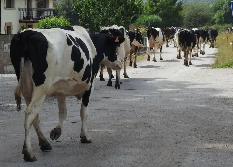 Naast de cp een boerdrij, er zijn camperaars die klagen over de stank van koeienstront. Vervelend vinden we wel de bijbehorende vliegen.