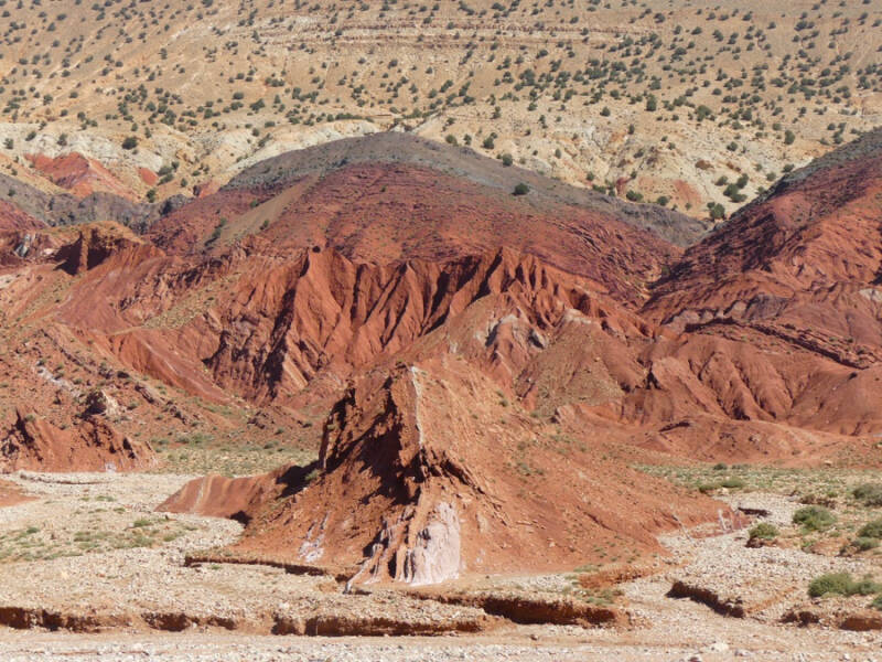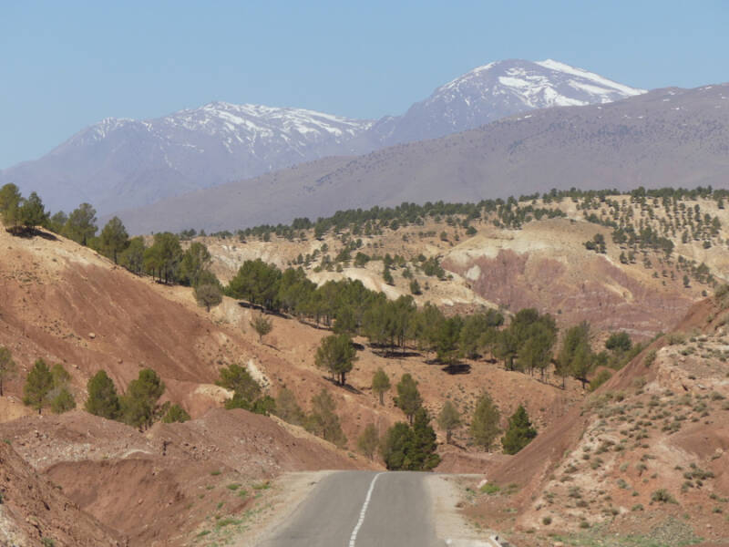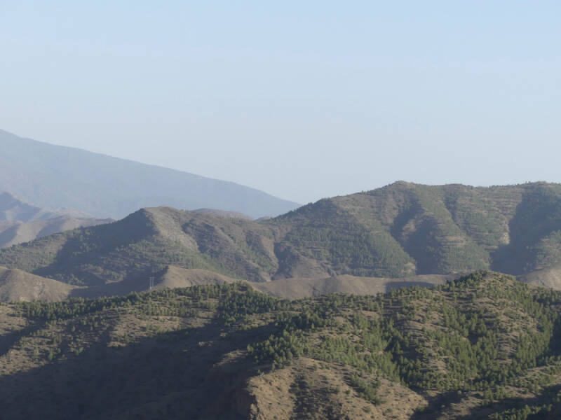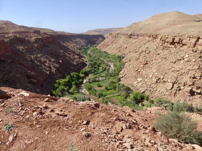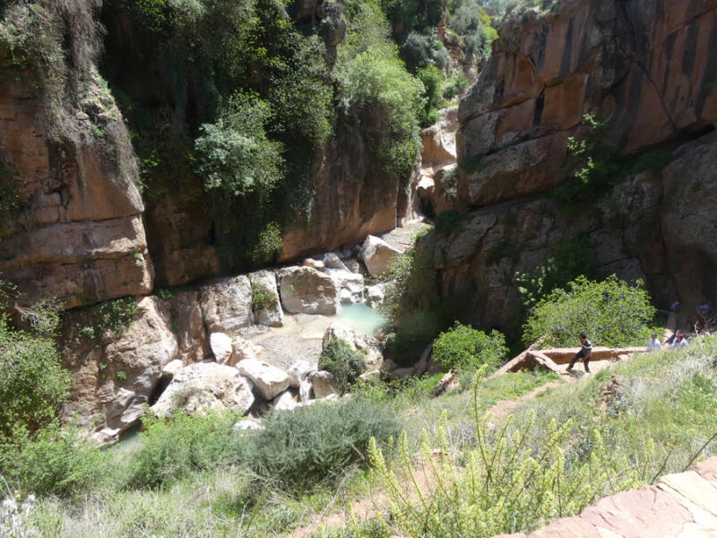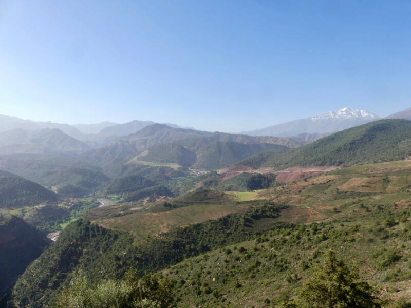 Je hebt hier weer een heel ander landschap dan aan de andere kant van de Hoge Atlas, het is hier veel groener dat zal wel door de stijgingsregens komen, als het hier al een keer regent dan gebeurt het aan deze kant van de Atlas. Je ziet hier ook bomen en planten die je bij ons ziet en je hoort af en toe de koekoek, maar genoeg vogels zingen die we niet kennen en die zich niet laten zien. En vlinders en bloemen die we ook nog nooit gezien hebben.
