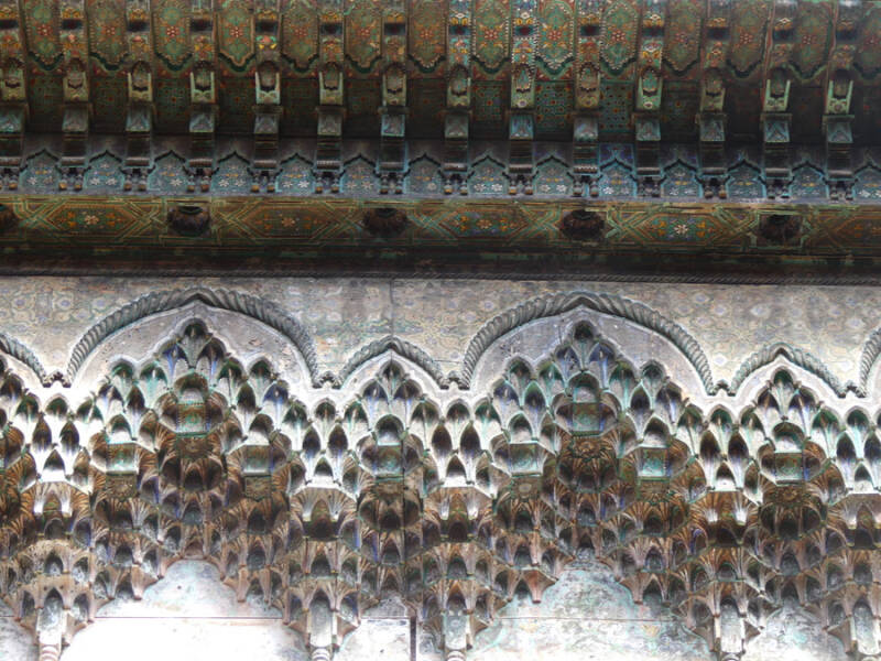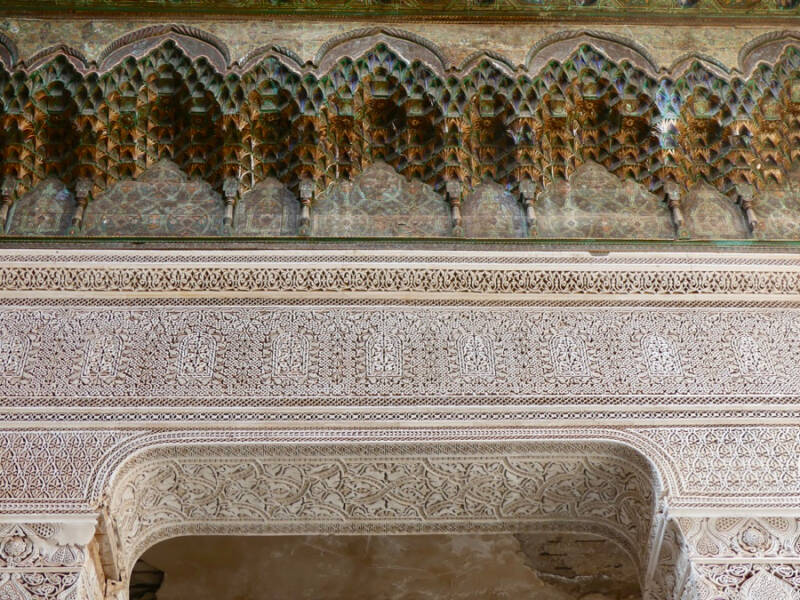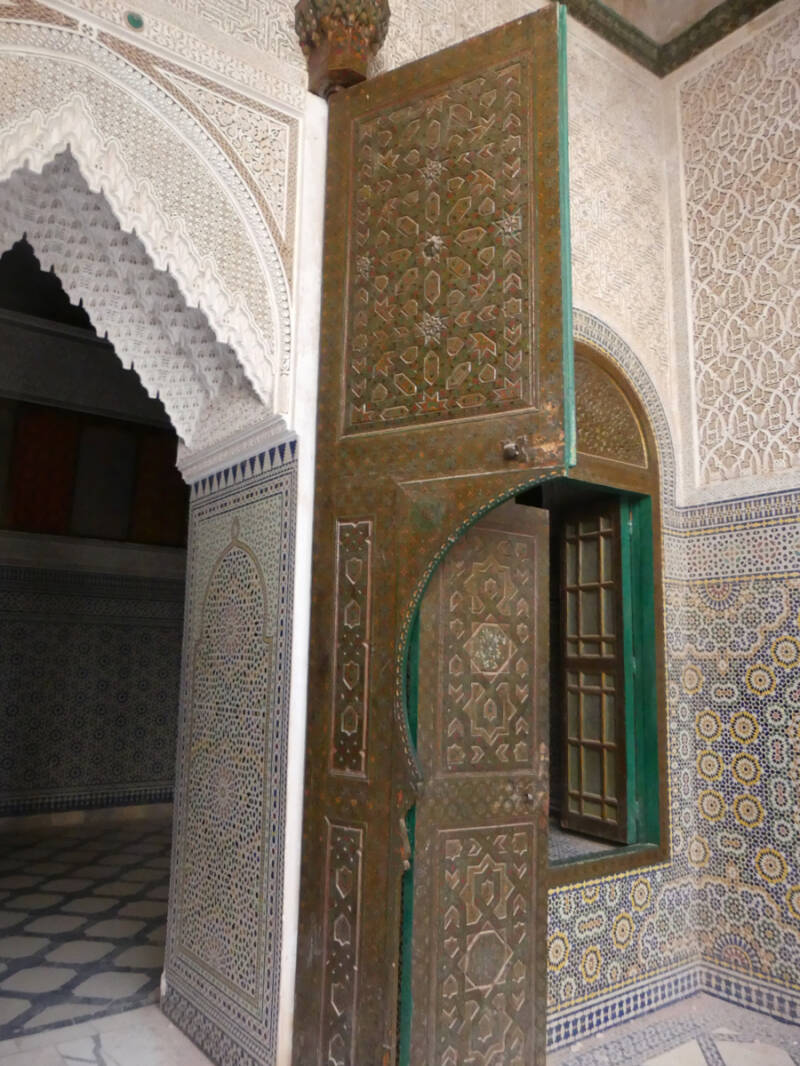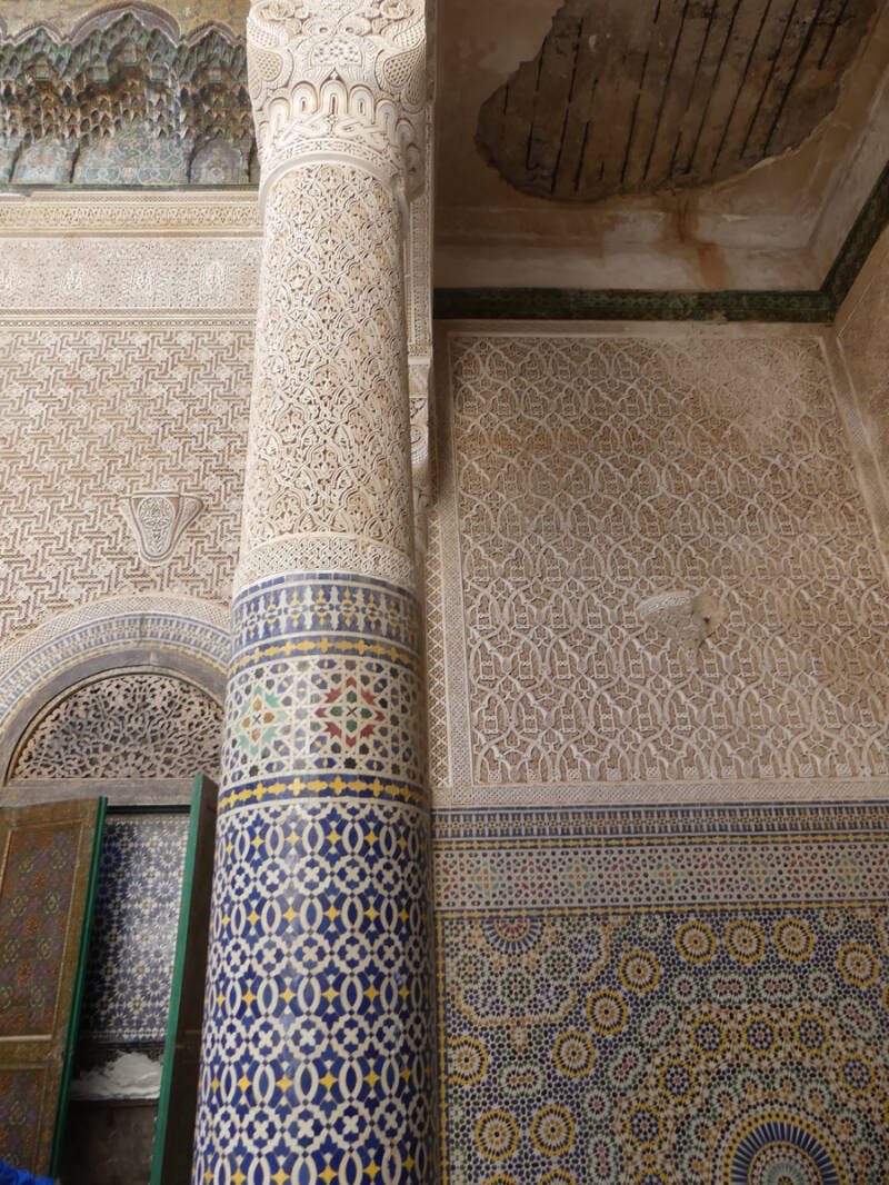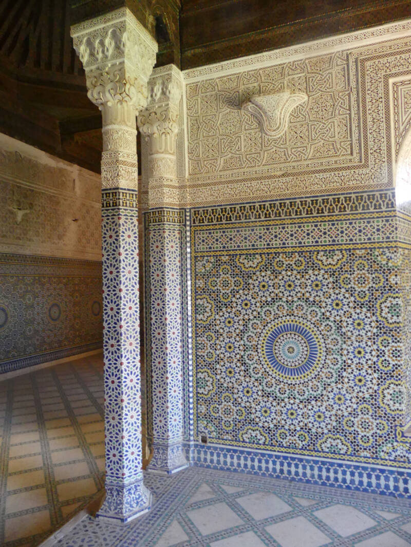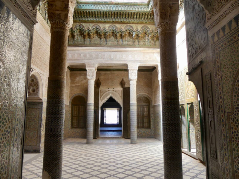 Na een bocht zagen we de kashba Talouet liggen, in 1ste instantie zag hij er vanuit de verte vervallen uit. Maar het was zeer de moeite waard om hem te bezichtigen, een deel van het interieur was prachtig, het deed denken aan Moorse bouwkunst in Spanje of Palais Bahia in Marrakech. Er zijn een aantal prachtig gedecoreerde ruimtes met pilaren , mooie plafonds, stucwerk en fraai beschilderde deuren en wanden.