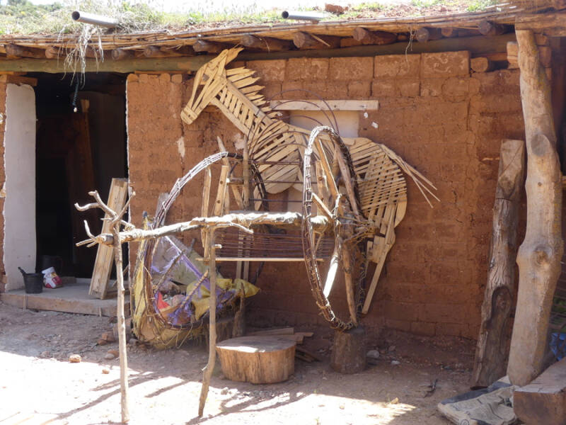 In het atelier houtbewerking wordt gewerkt aan een paard en wagen