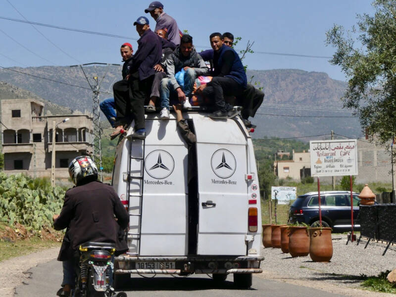 Vanmorgen hebben we de hoteleigenaar/artiest bedankt voor de gastvrijheid en zijn we voor half 10 vertrokken. In Demnate stikte het werkelijk van de oude Mercedes busjes, 10-tallen stonden in de straten geparkeerde reden er rond.