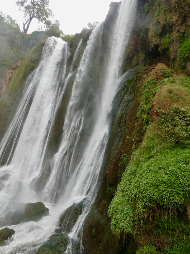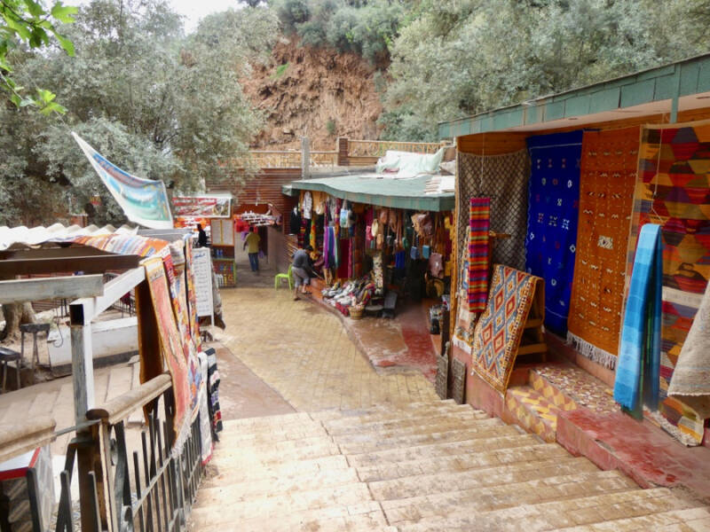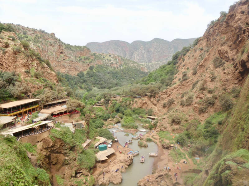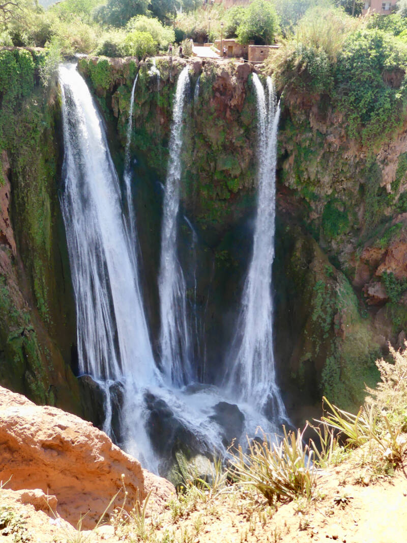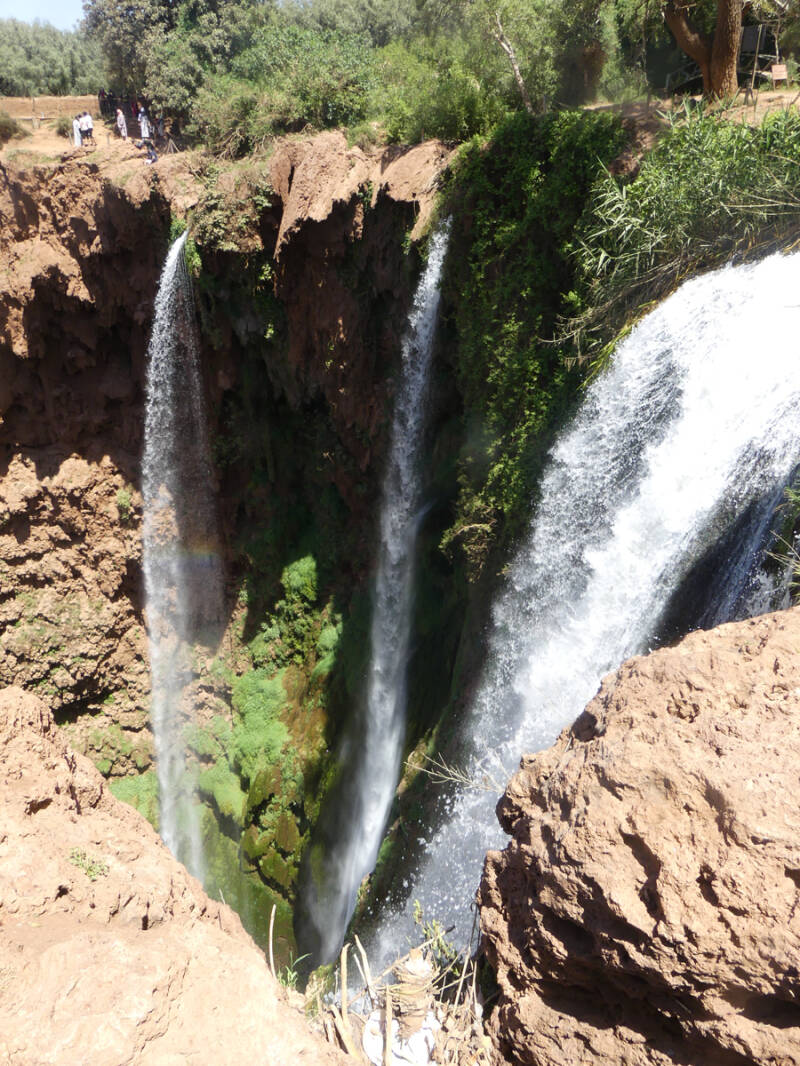 We hebben getwijfeld of we hier wel naar toe moesten omdat het een hele afdaling en vervolgens klim is, de watervallen van Ouzoud zijn 110m hoog. We zijn eerst naar de oostelijke oever gegaan via een brug. Via een wandelpad, die nu gedeeltelijk bestraat is, kom je bij de bovenkant van de watervallen. Daar kun je ook via een bruggetje op de andere oever komen, wel nog steeds bovenaan de waterval. We zijn nog een eindje via een wandelpad gelopen en vonden het toen wel welletjes en zijn terug gegaan, er stond gaan wind en de zon brandde.