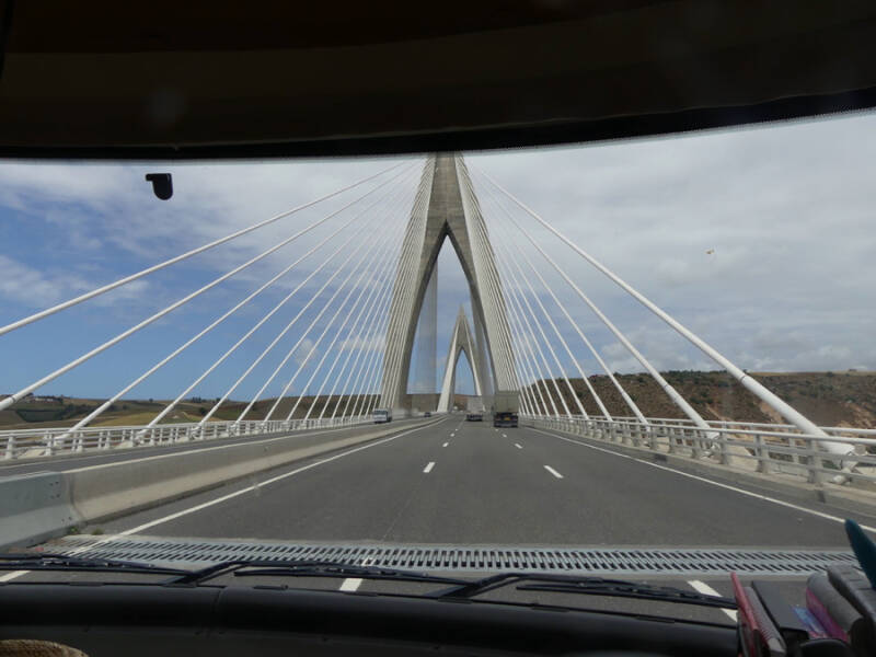 We zijn via witte weggetjes, op de kaart, volgens Tomtom de kortste weg , naar de tolweg gereden bij Settat. Op het eerste stukje na was de weg in goede staat, wel af en toe een gat die je moest ontwijken maar een flink stuk was opnieuw geasfalteerd. Toch is het prettig om weer op de tolweg te belanden, het eerste stuk was niet druk dus de cruise control erop. Het landschap was toch al saai geweest na de Midden Atlas, vlak, dus dan schiet de tolweg lekker op. We hebben over 383km 5,5 uur gereden, de tol kostte voor 200km nog geen €12,-. , over de eerste 183km via de secundaire wegen deden we 3uur. Langs de snelweg stonden veel auto’s met pech, er rijden dan ook nog heel wat oude barrels rond. Toch zie je bij Casablanca veel duurdere auto’s, opvallend is het grote aantal nieuw type Rangerover. Bij Casablanca en van Casablanca richting Rabat was het druk maar we hebben geen opstoppingen gehad.