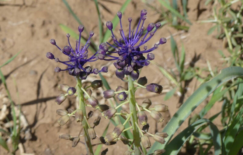 De kuifhyacint, (Toon)wat andere bloemen en een bloeiende vruchtboom staan hier in de buurt van de camper