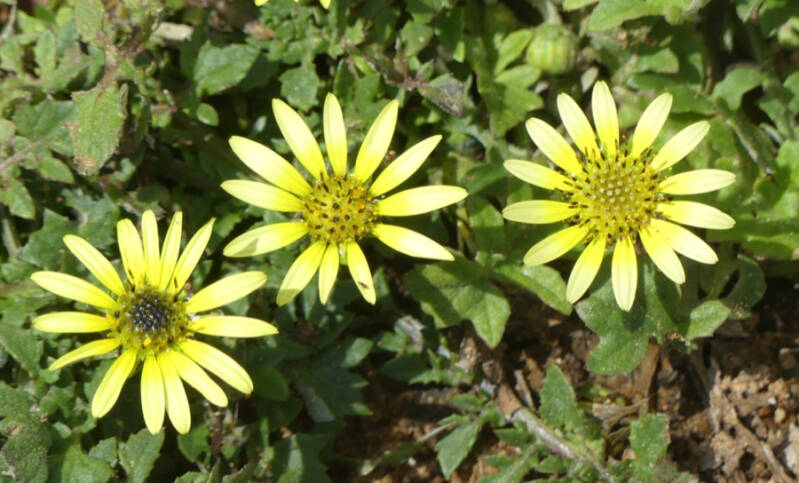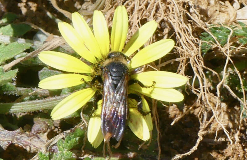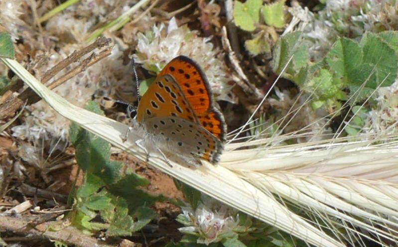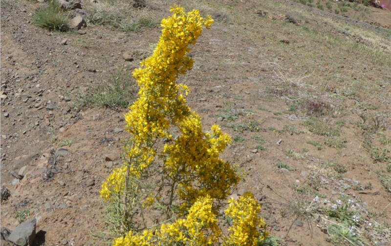 Vanmiddag een korte wandeling gemaakt langs en door de rivierbedding. Er is slechts een heel klein stroompje water. In een kom had zich water verzameld en daar deden vrouwen de was. Er bloeien hier wel bloemen, je ziet bijen, koolwitjes en luzernevlinders, 1x hoorden we een groepje bijeneters overkomen. Er zitten hier wel zwarte tapuiten maar die kwamen niet dichtbij. Onderweg vloog er een groepje woestijnvinken vlak voor de camper langs.