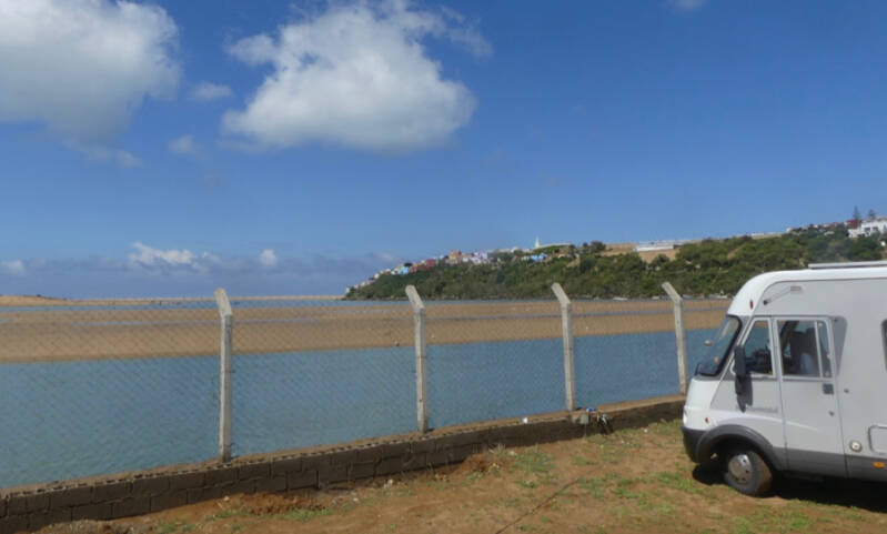 We staan nu op de stadscamping in Kenitra, een voor ons bekende plek. Het is goed voor 1 nacht, veel Fransen vinden voor maanden, dat zal wel met de prijs te maken hebben, €4,50 per overnachting. Je moet niet in de buurt gaan staan van de bar/restaurant, ze hebben een alcoholvergunning, daardoor wil het nog wel eens luidruchtig zijn. Er zijn nog een paar campings in Marokko waar alcohol in de bar of restaurant wordt geschonken, dit is zover wij weten, de enige bar waar ook hoeren komen. En dat terwijl prostitutie in Marokko verboden is, als het binnen bepaalde perken blijft wordt er w.s. niet handhavend opgetreden.