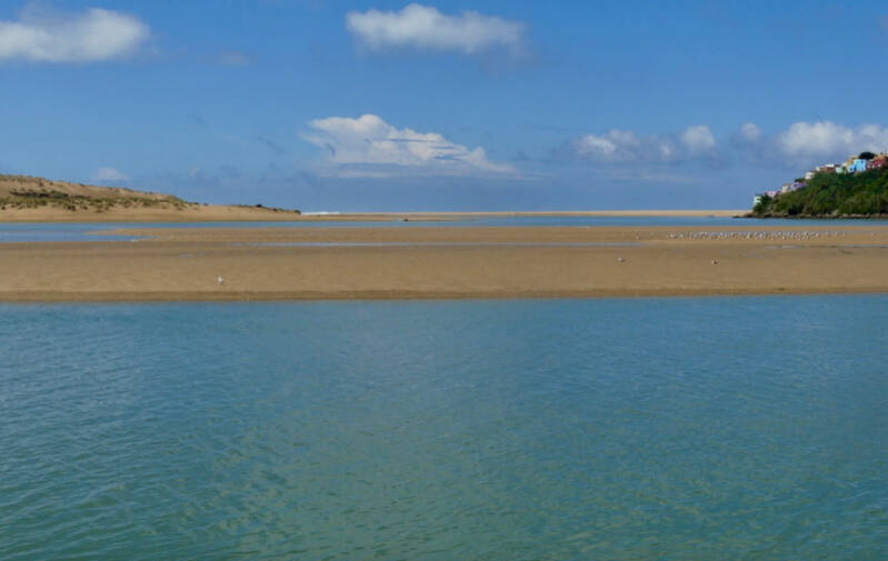 We staan op een mooi plekje aan de lagune in Moulay Bousselham, helemaal rechts vooraan