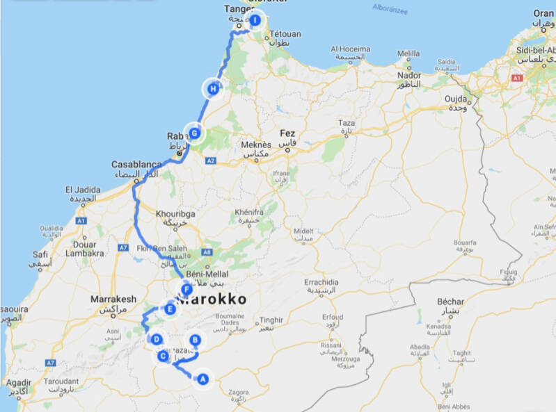 via Zagora, die hier al als B staat omdat er 2x zijn geweest zijn we naar